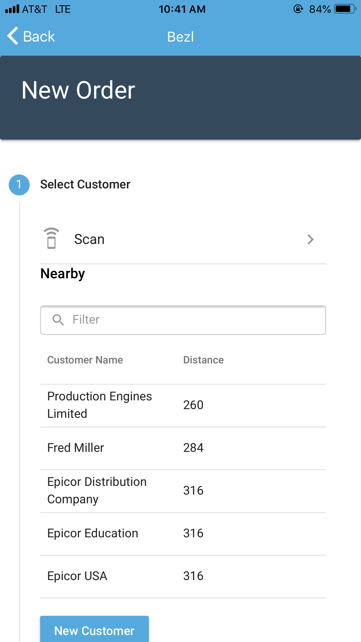 The Field Sales Order Entry bezl makes this process efficient. The bezl utilizes geolocation to help workers quickly select the customer account based on the nearest customer in the system. The sale can then be made and documented in real-time. No paperwork or calling in to the office necessary.