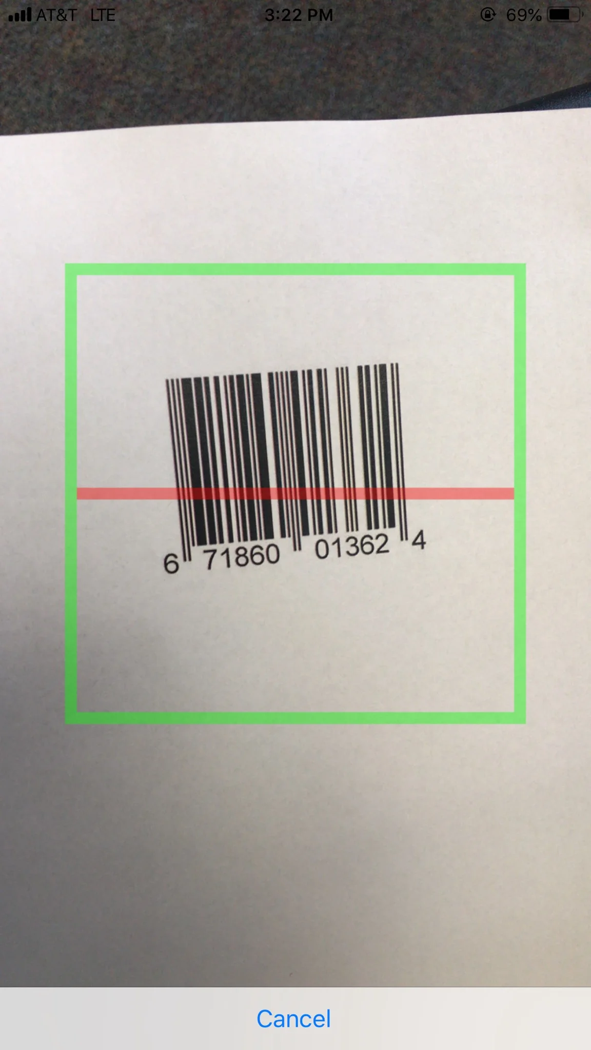 When ‘Scan’ is tapped, the camera captures the barcode data